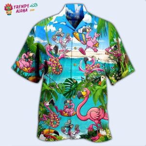 Flamingo Pattern Hawaiian Shirt Capturing Summertime Beach Essence