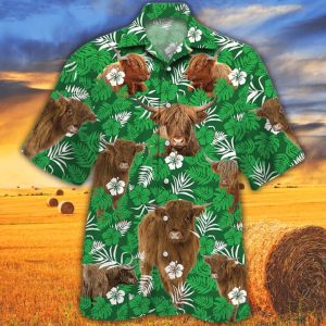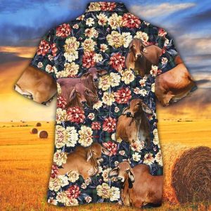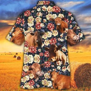 Cow Trendy Hawaiian Shirts Charolais Cattle Lovers Green Floral Pattern Trendy Hawaiian Shirt