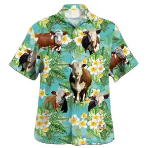 Highland Cattle Lovers Jungle Leaves Hawaiian Shirt, Cow Flower KLA Shirt, Hawaiian Shirt Men, Women