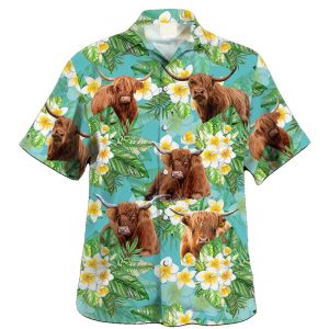 Highland Cow Flowers Trendy Hawaiian Shirt, Gift For Farm Clothing, Summer Gift For Men And Women