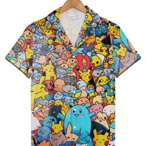Pokemon Theme Hawaiian Shirt Colorful Cartoon KLA Shirt for Gamers and Anime Fans