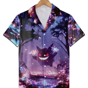 Gengar Purple Pokemon Hawaiian Shirt KLA Anime Gastly Shirt Pokemon Newest Collection