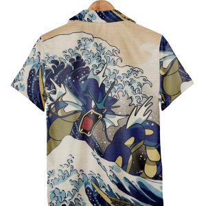 Gyarados Pokemon Hawaiian Shirt, Japanese Wave Art Inspired Pokémon KLA Shirt for Pokemon Fans