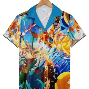 Pokemon Attack Hawaiian Shirt Bold Action Scene Tropical Shirt Summer Outfit