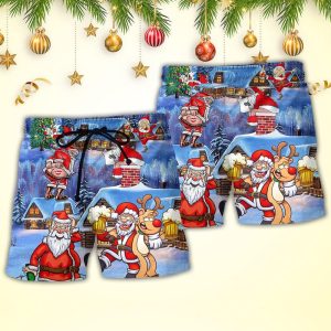 Christmas Santa Claus Drunk Beer Troll Happy Xmas Trendy KLA Hawaiian Beach Shorts