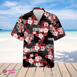 Fireball Hawaiian Flowers Pattern Shirt, Beer Summer Party Hawaiian Shirt, Schlitz Beer Shirt