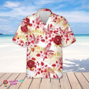 Jim Beam Hawaiian Sea Island Pattern Hawaiian Shirt, Summer Beer Hawaiian Shirt