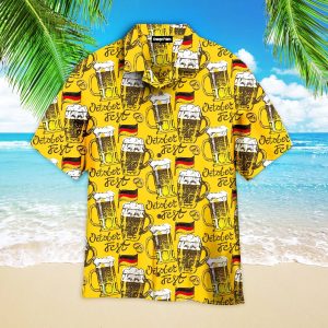 Oktoberfest’s Lively Beer Tribute on Celebratory Hawaiian Shirt