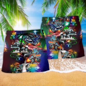 Car Merry Christmas Star Light Trendy KLA Hawaiian Beach Shorts