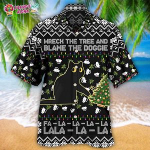 Black Cat Wreck The Tree And Blame The Doggie Merry Christmas Hawaiian Shirt – Trendy KLA