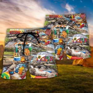 Camping Funny Cat Chilling This Is My Camping Shirt Trendy KLA Hawaiian Beach Shorts
