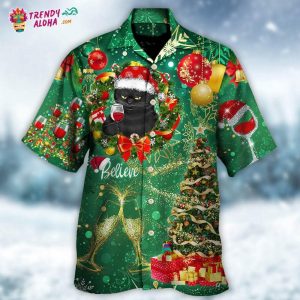 Christmas Black Cat Drinking Happy Christmas Tree Green Light Hawaiian Shirt – Trendy KLA