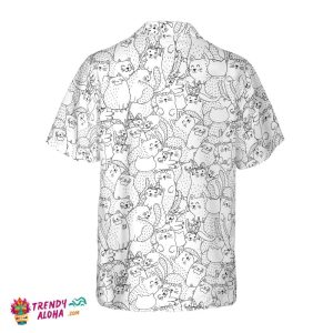 Funny White Cat Sitting Beside Tropical Floral Custom Hawaiian Shirt