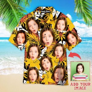 Funny Custom Face Your Photo On Yellow Flower Design Custom Hawaiian Shirt