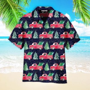 Red Christmas Truck Holding Christmas Trees KLA Trendy Hawaiian Shirts