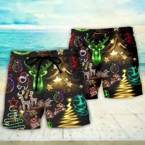 Christmas Reindeer Neon Light Bright Trendy KLA Hawaiian Beach Shorts