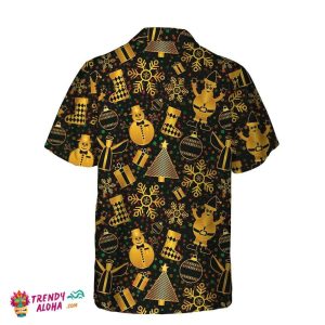 Golden Christmas Elements Hawaiian Shirt, Funny Christmas Shirt For Men, Best Xmas Gift Idea
