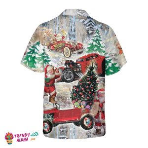 Santa Claus & His Hot Rod On Christmas Hawaiian Shirt, Funny Santa Hawaiian Shirt For Men