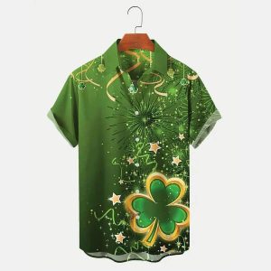 Holiday St. Patrick’s Men’s Bowling Shirts Shamrock Art Hawaiian Shirts, Patrick’s Day Gift