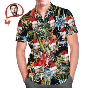 Men’s Custom Face Merry Christmas Personalized Hawaiian Shirt Christmas Gift