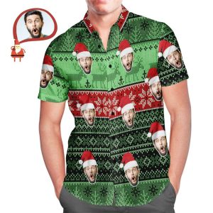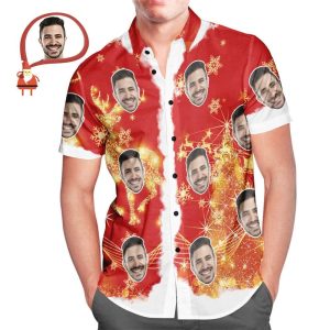 Men’s Custom Face Merry Christmas All Over Print Fun Christmas Hawaiian Shirts Gift For Men