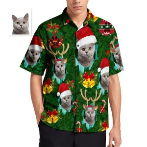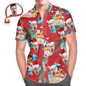 Custom Face Men’s Hawaiian Shirt Santa Hat Antlers Christmas Shirt