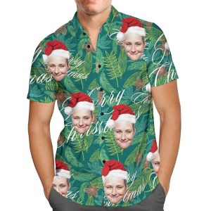Custom Face Personalized Merry Christmas Hawaiian Shirt All Over Print Leaves