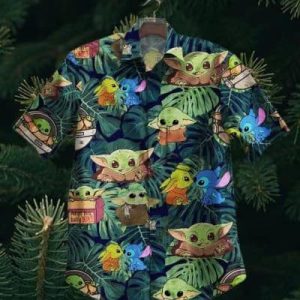 Sw Trendy Hawaiian Shirt Baby Yoda Grogu Stitch Cute Green Hawaii KLA Shirt 2022
