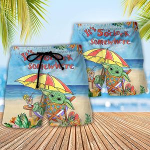 Sw Baby Yoda In The Beach It’S 5 O’Clock Somewhere Print Trendy KLA Hawaiian Beach Shorts