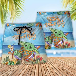 Sw Cartoon Baby Yoda Beach Vibes Only Trendy KLA Hawaiian Beach Shorts