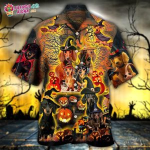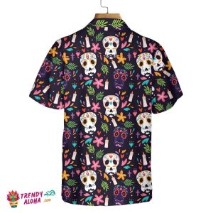 Halloween Gift Bone Skull Dog With Mexico Pattern Hawaiian Shirt, Funny Sugar Skull Dachshund Shirt