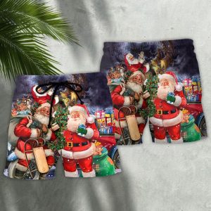 Christmas Joyful Santa Snowman Merry Xmas Trendy KLA Hawaiian Beach Shorts
