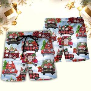 Gnome And Christmas Truck Merry Xmas Trendy KLA Hawaiian Beach Shorts