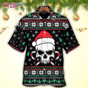 Christmas Skull Wearing Santa Claus Hat And Sweat Candy Hawaiian Shirt – Trendy KLA
