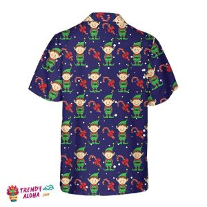 Christmas Elves On Blue Hawaiian Shirt. Elf Christmas Shirt, Best Xmas Gift Idea