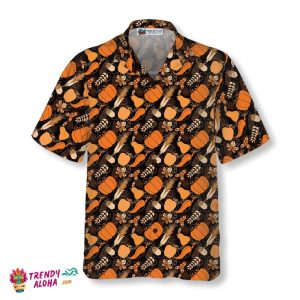 Guitar Turkey Thanksgiving Unisex Hawaiian Shirt with Pumpkin Motif