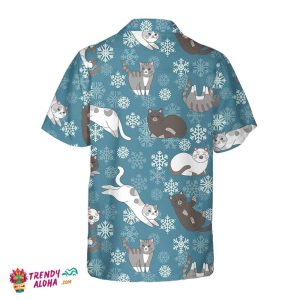 Blue Snowflakes Adorable Kittens Hawaiian Shirt, Funny Christmas KLA Shirt
