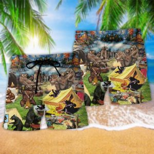 Camping Worst Case Scenario Bears Eat You Funny Trendy KLA Hawaiian Beach Shorts