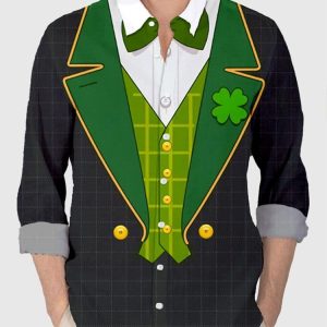 Funny Tuxedo Irish Leprechaun Costume For St. Patrick’s Day Printing Men’s Long Sleeve KLA Hawaiian Shirt