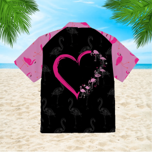 Pink Flamingo, Black Parrots And Plants Hawaii Shirt, 3D T-Shirt