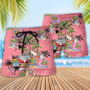 Pink Flamingo With Red Hibiscus In White Trendy Hawaiian Shirt