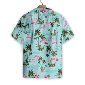 Flamingo Trendy Hawaiian Shirt Blue Flamingo Palm Tree Hawaii Shirt Flamingo KLA Shirt