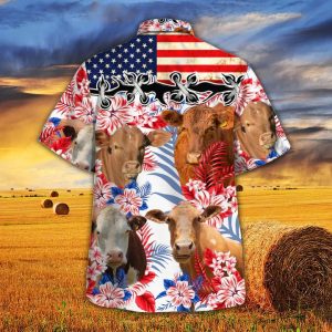 American Flag Hereford Cattle Hawaiian Shirt for Cow Enthusiasts