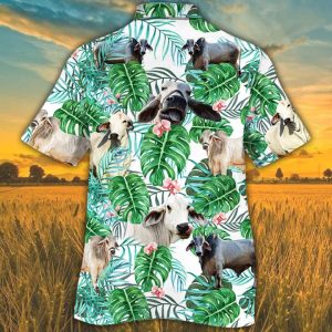 Tropical 3D Cow Pattern Geometric Trendy Hawaiian Shirt, Cow Trendy Hawaiian Shirt For Summer Gifts