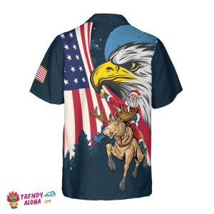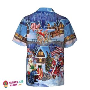 Christmas Holiday Santa Patriot Hawaiian Shirt, American Flag Christmas Shirt, Unique Christmas Gift