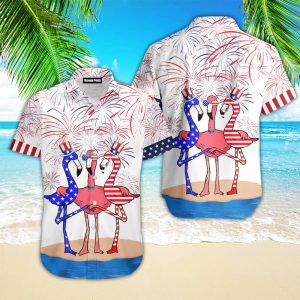 Flamingo American Flag Firework Trendy Hawaiian Shirt For KLA Shirt