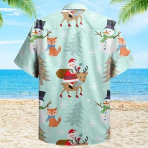 Blue Snowman and Santa Claus Fox Winter Hawaiian Shirt Ideal Gifts