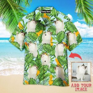 Funny Cat Raising Paw Pineapple Tropical Custom Hawaiian Shirt