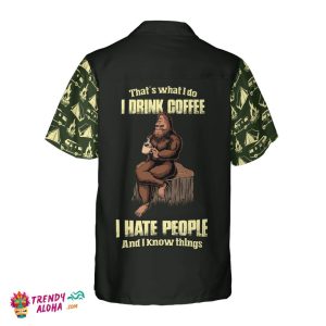 Bigfoot Darryl Drink Coffee & Hate People Bigfoot Hawaiian Shirt, Camping Bigfoot Shirt For Men