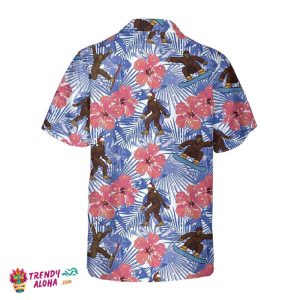 Tropical Funny Beach Bigfoot Hawaiian Shirts For Men, Blue Sasquatch Shirts